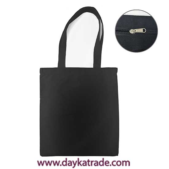 BOL-0008 TOTE BAG TELA SACO NEGRACON CREMALLERA G . Tote bag de tela saco negra grande con cremallera